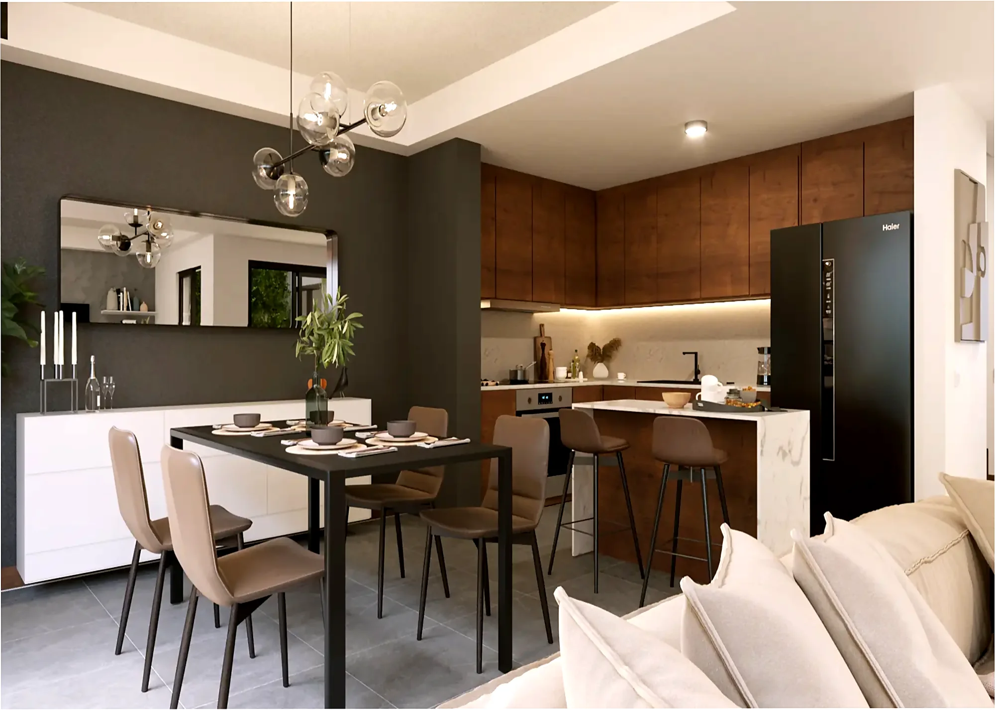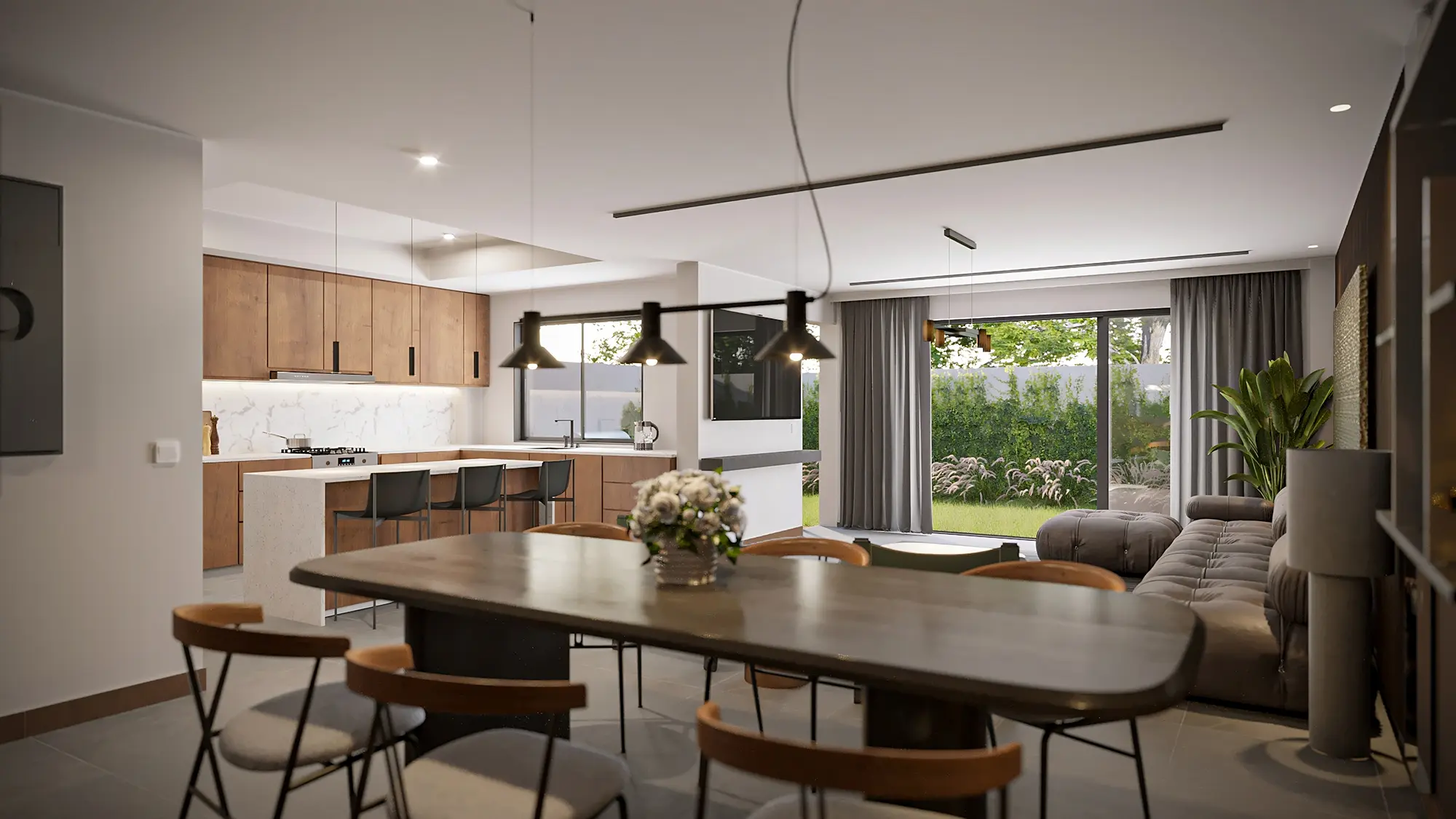 Un moderno y amplio espacio con un concepto de diseño de distribución abierta. La opción perfecta para familias con hijos jóvenes, que buscan espacios más grandes para disfrutar de su hogar rodeados de la mejor compañía.
