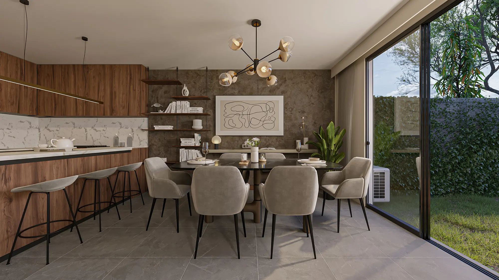 Un moderno y amplio espacio con un concepto de diseño de distribución abierta. La opción perfecta para familias con hijos jóvenes, que buscan espacios más grandes para disfrutar de su hogar rodeados de la mejor compañía. El lugar ideal para estar entre la naturaleza.
